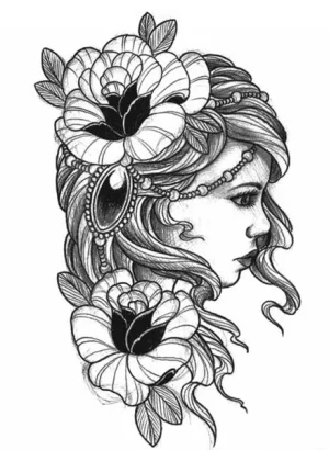 1960 Girl With Flowers Tattoo