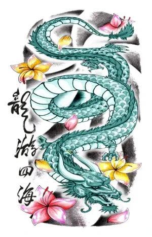 Asian Flower Dragon Tattoo