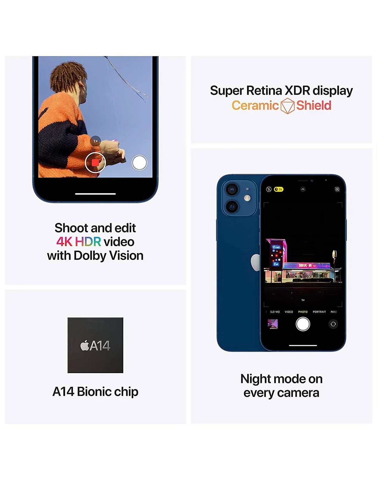 - Display: 6.1-inch Super Retina XDR OLED with HDR10 and Dolby Vision, delivering 1200 nits peak brightness for vivid color and clarity.