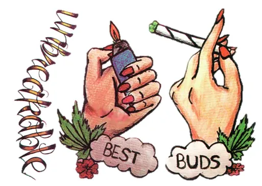 Unique temporary tattoo of a sigaret and a lighter with the text ‘Unbreakable – Best Buds’.
