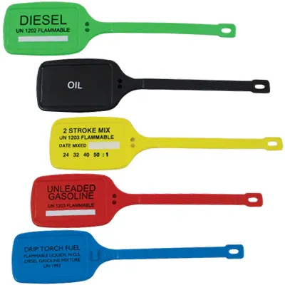 Plastic fuel container labels. Preprinted with fuel type. Specify label.