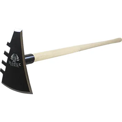ProHoe’s most complete wildland firefighting and trail building tool on the market. Made from hardened steel of an Ag disc blade. Features: a pick to dig out a rock or root, a rake to break up clods or level an uneven surface, one 7” wide sharp hoe to cut down a bank, chop through a root or fill a ditch, one beveled scraper to level a path or fill in a low spot. Specify 48 or 54” Ash handle.