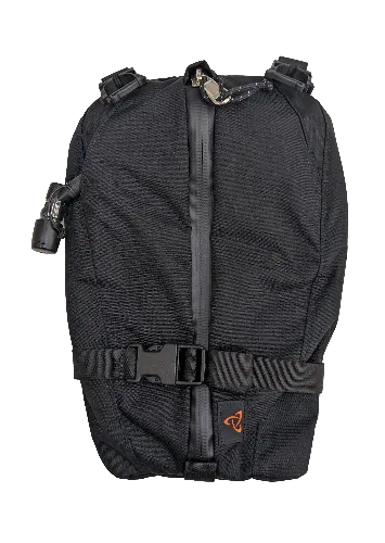 Simple and yoke mounted with quick attach buckles, this center-zip access reservoir carrier features hose porting on either corner for left- or right-handed handed setup.