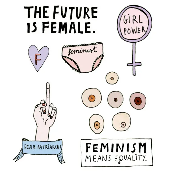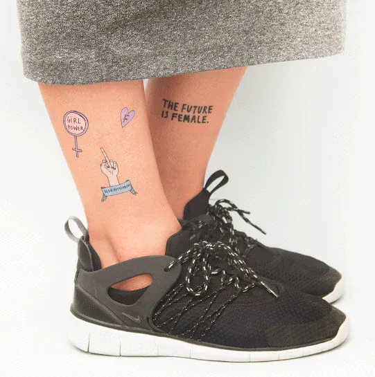 V Power tattoo set, tits, panties, a middle finger and a feminism slogan by Tattoonie Premium Temporary Tattoos.
