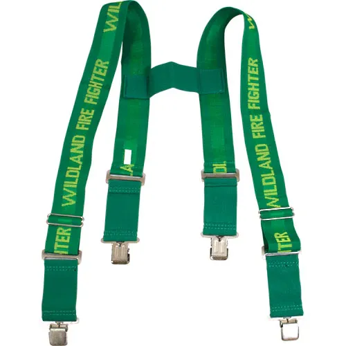 These adjustable, heavy-duty suspenders have “Wildland Fire Fighter” woven into them. The “H” Back style keeps them from falling down on your arms while working and the elastic at the ends allows for freedom of movement.